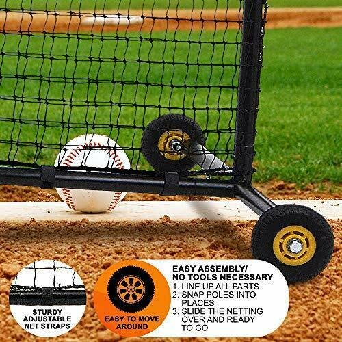 L Screen Baseball Portable Net Softball Pitching with Wheels-7 feet by 7